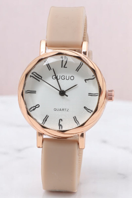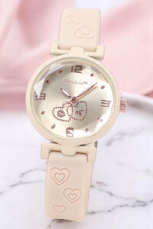 Couple Heart Printed Dial Analog Watch for Women - Beige