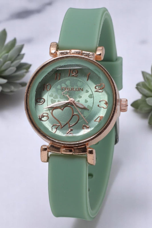Couple Heart Printed Dial Analog Watch for Women - Pastel Green