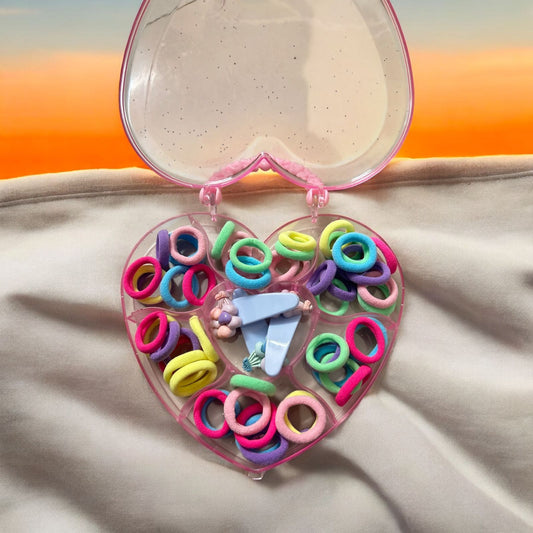 Heart Colorful Hair Band & Hair Clip Gift Combo Box for Girls