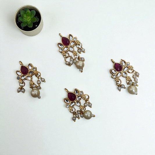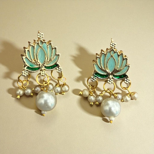 Multicolor Kundan Lotus Pendant Leaf with Pearl