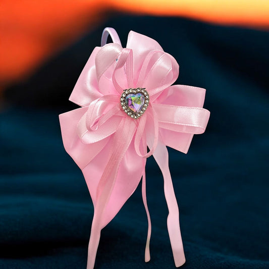 Premium Ribbon Bow with Heart Stone Hairband/Headband for Baby Girls, Kids (1 Piece)