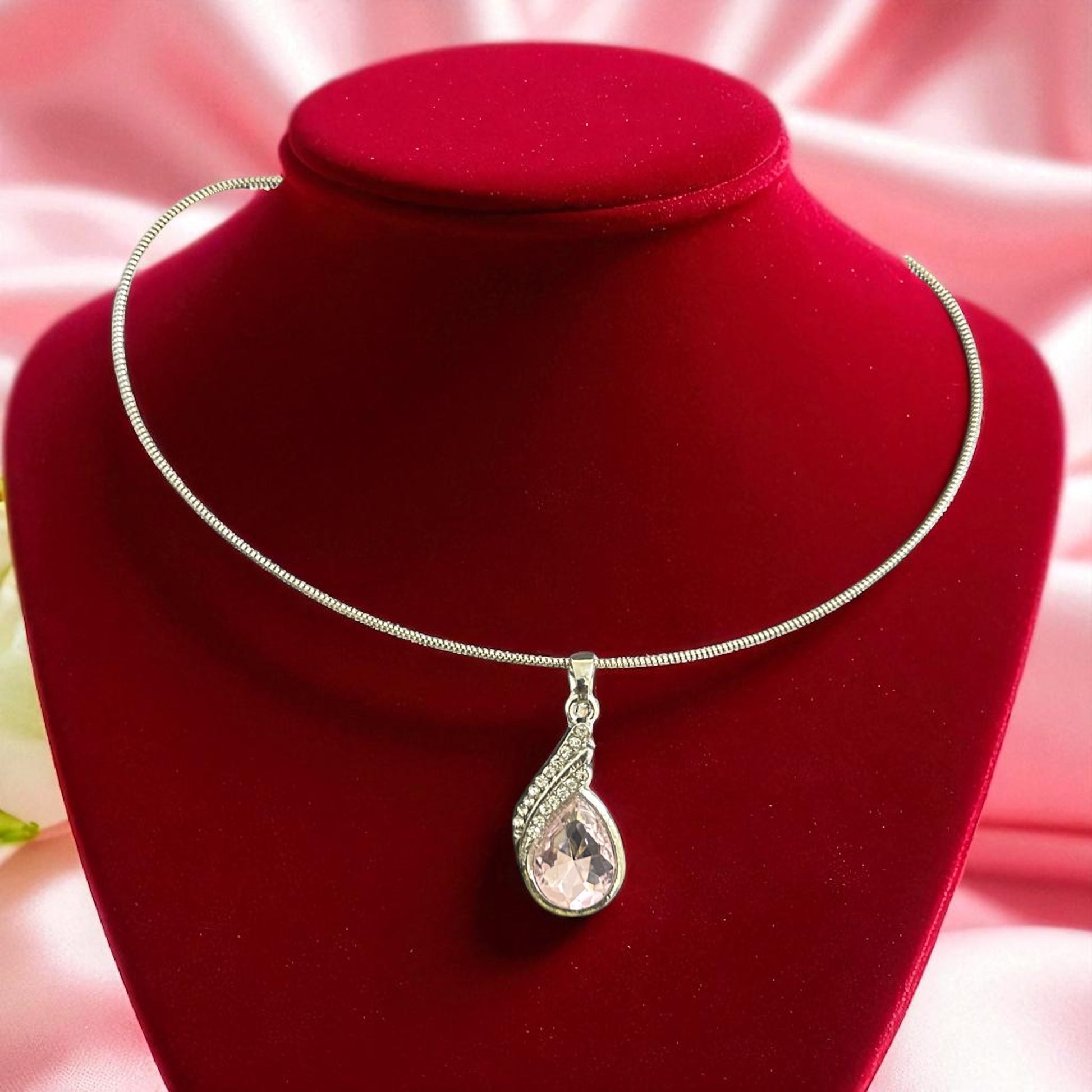 Elegant Silver Wire Chain Necklace with Luxury Paisley Pendant
