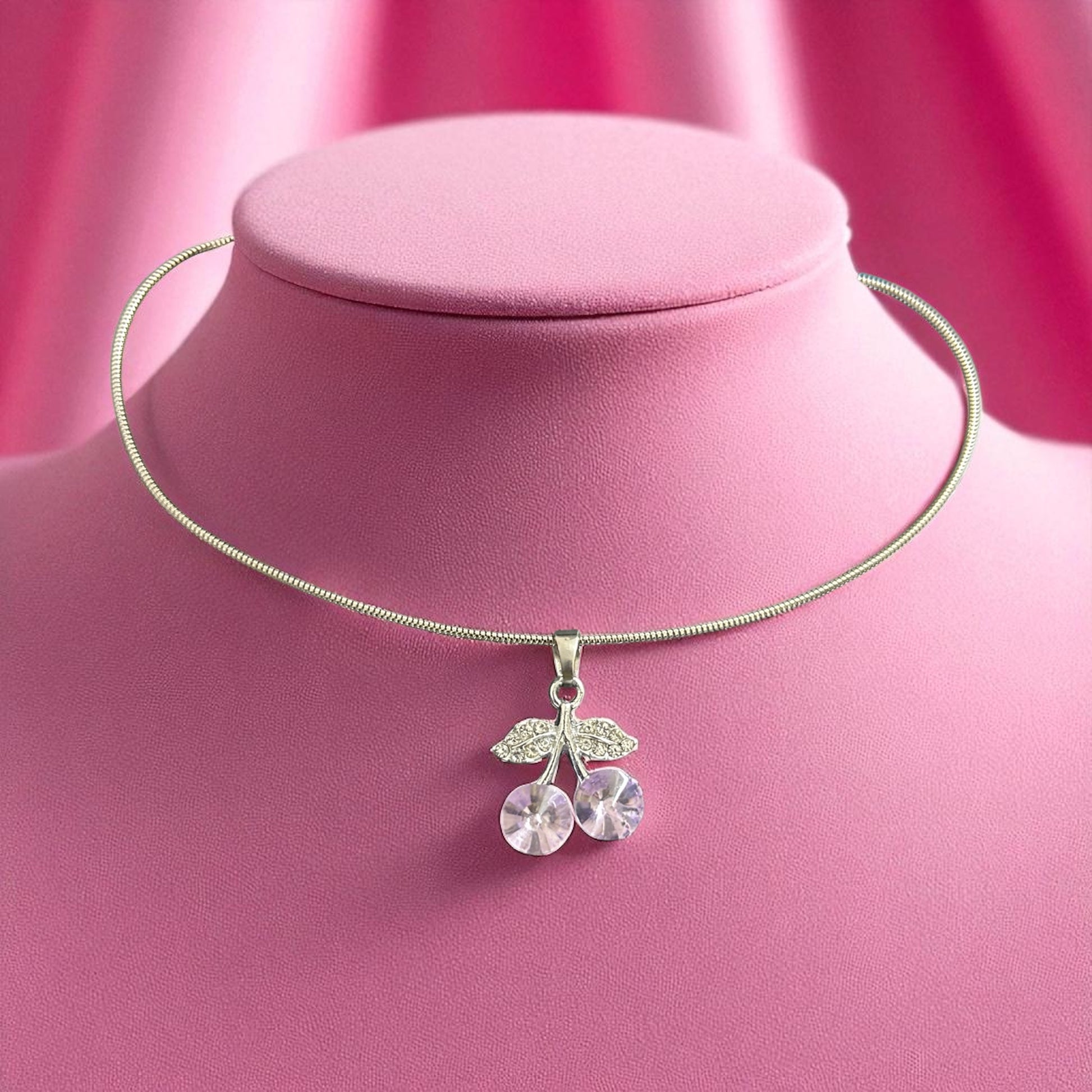 Elegant Silver Wire Chain Necklace with Luxury Cherry Pendant